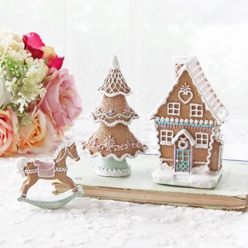 まるでお菓子のような、クリスマスらしいモチーフのオブジェの3点セットです。