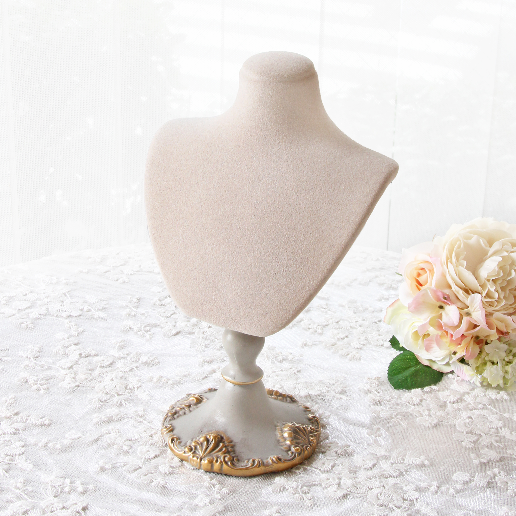 アクセサリーホルダーとして、ブレスレットやネックレスを美しく飾れるトルソースタンドは、クラシカルなオブジェとしてもお楽しみいただけます。