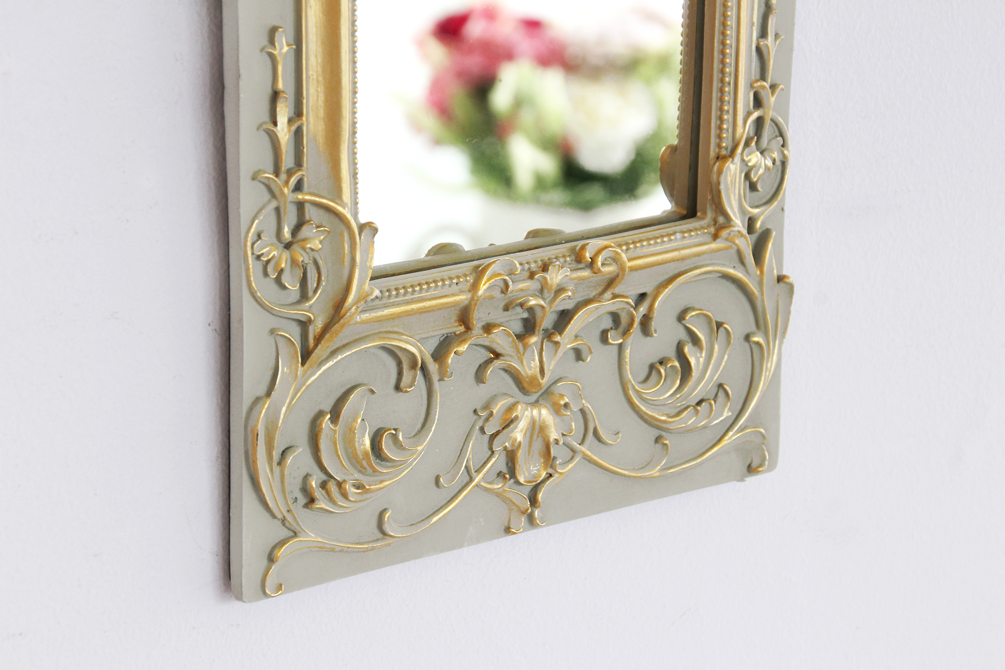 立体的な植物のレリーフにはシャビーなゴールドの塗装が施され、装飾的でクラシカルな印象です。
